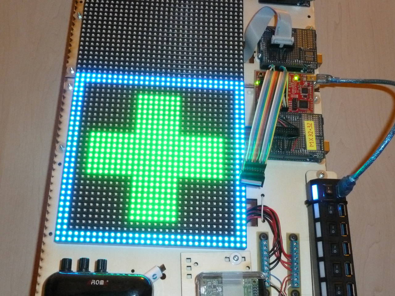 Le programme ci-dessous m’a été gracieusement transmis par Pierre-Yves Rochat. La seule chose que j’ai modifiée est la description du brochage pour qu’elle corresponde à ma matrice. Voir l’article d’Adafruit ci-dessus au sujet des différentes descriptions de brochage.