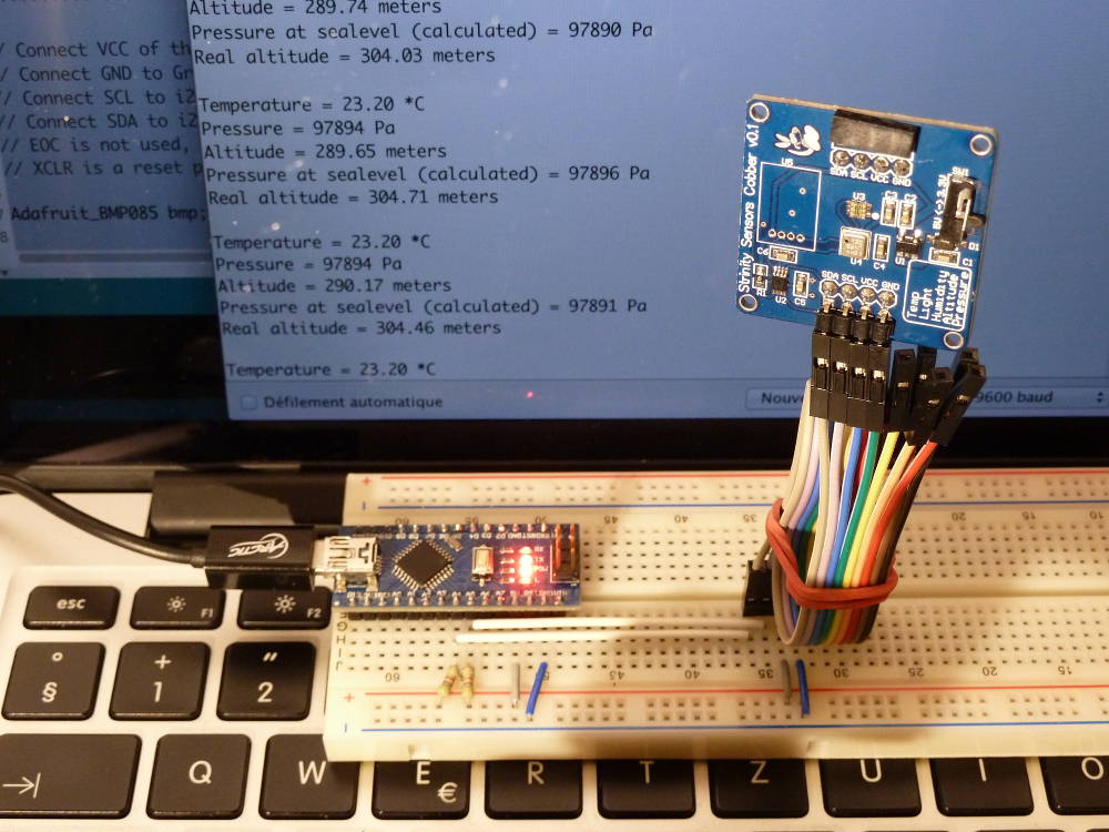 En attendant, j’ai testé la luminosité et la pression et les mesures ont l’air cohérentes, ce qui est un bon point. À noter quand même que la carte BMP180 retourne aussi la température.