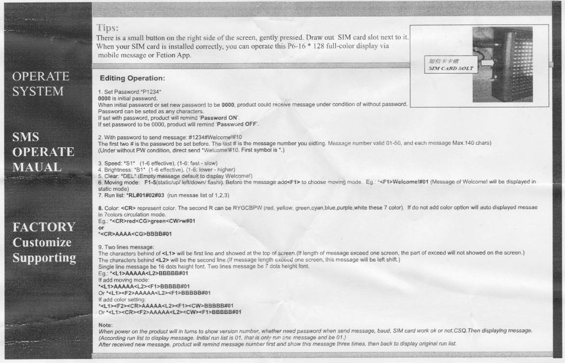 La carte SIM permet de contrôler l’afficheur à distance via SMS ou Fetion App (service chinois de messagerie).