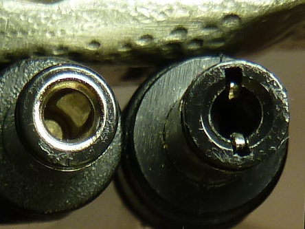 J’ai également fait un test avec deux connecteurs jack de test d’une longueur de 12 mm, de diamètres 5.5/2.1 mm et sans ergot. Le connecteur de test sur l’afficheur a un très bon contact alors que le connecteur de test branché au jack de l’alimentation pose le même problème de faux contact que si l’alimentation est directement connectée à l’afficheur.