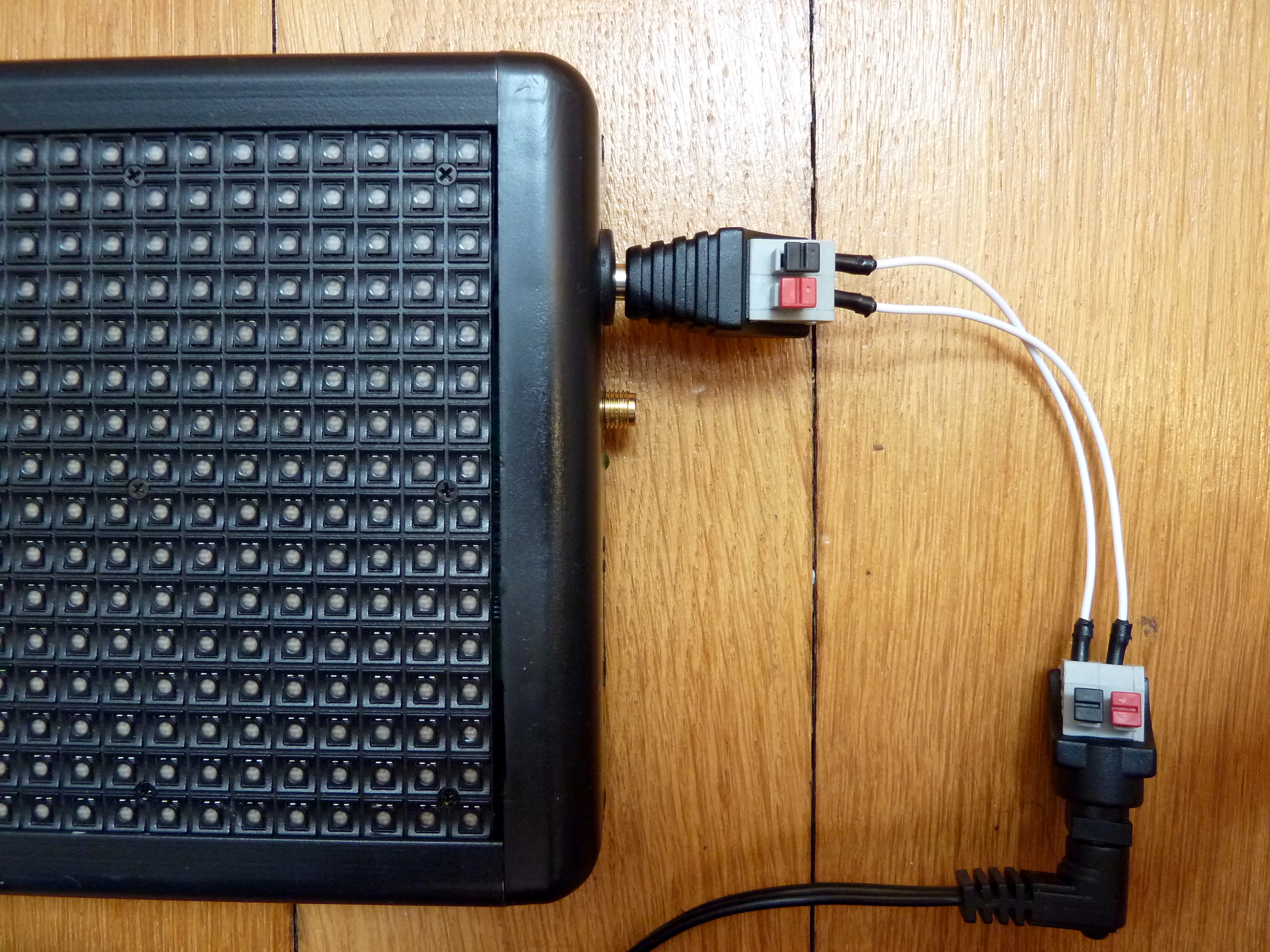 ⚠ Le connecteur jack de l’afficheur ne mesure que 9 mm de long et a un diamètre intérieur de 2.5 mm. Quand on le tourne, il y a de temps en temps des mauvais contacts qui font que l’afficheur redémarre. Avec un connecteur de 11 mm de long, de diamètre intérieur de 2.5 mm, mais pourvus d’ergots, ce problème disparait.