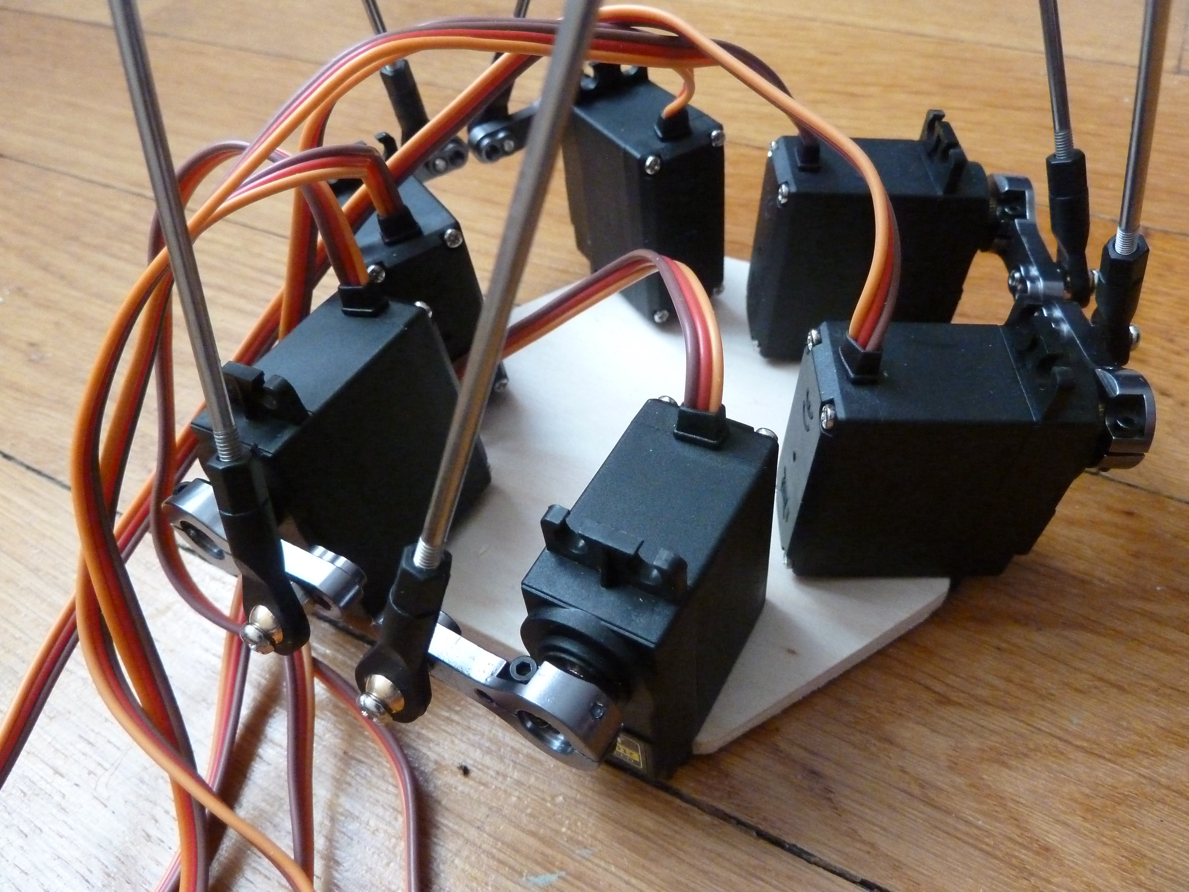 Premiers prototypes d’une plateforme de Stewart que je construis dans le cadre du projet 2019 (P19) du Microclub.