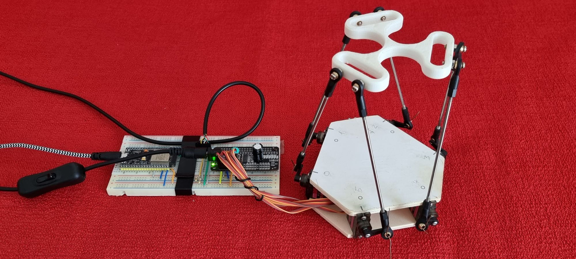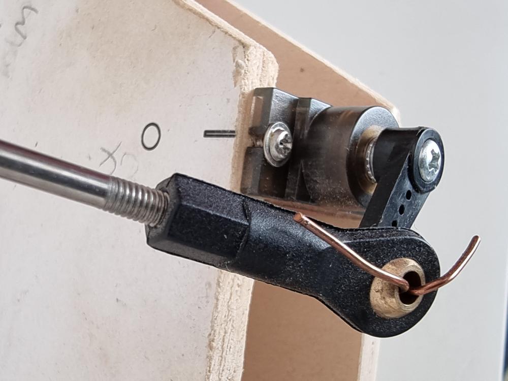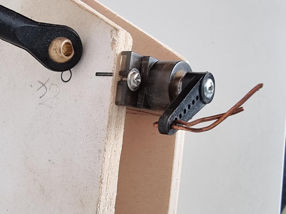 Avec un joystick analogique, des biellettes en fil de fer et des clones de servos Tower Pro MG90s.