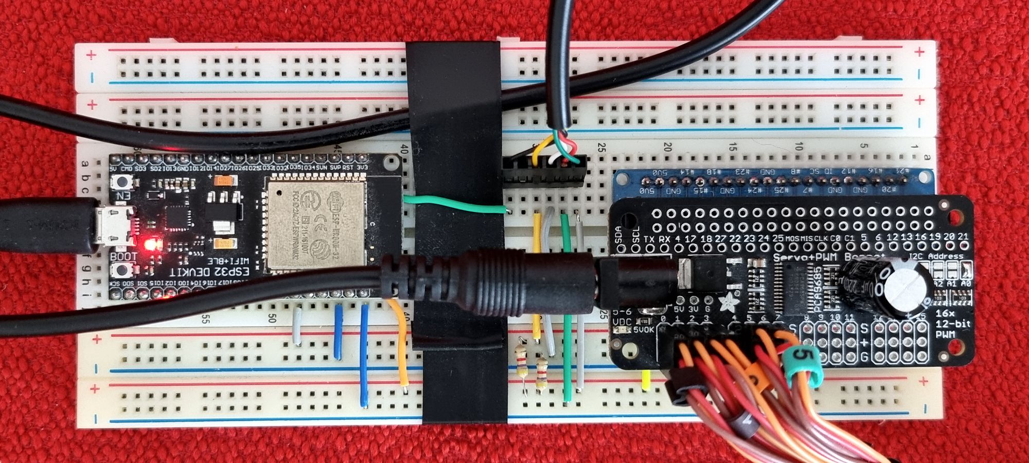 Pour la quatrième version, je ne génère plus le PWM des servos avec l’ESP32, mais avec un driver I²C PCA9685.